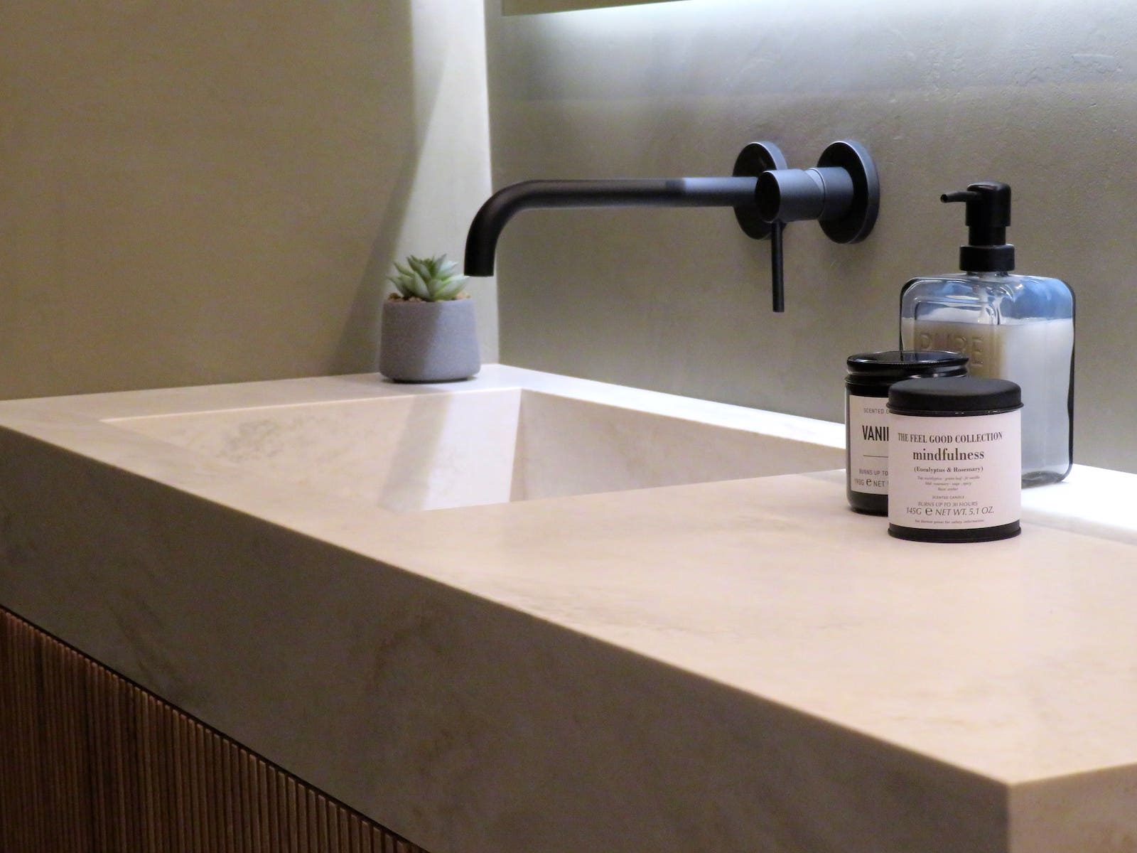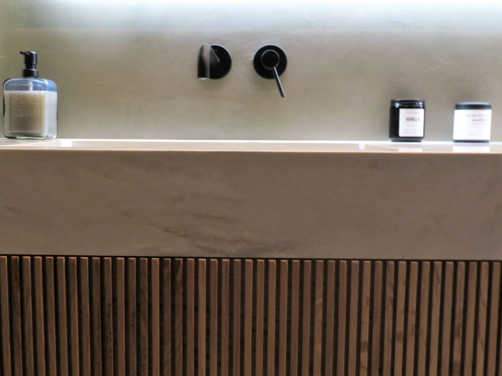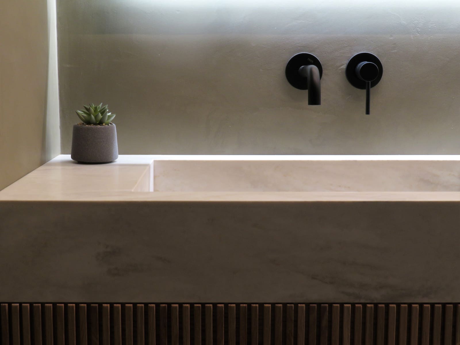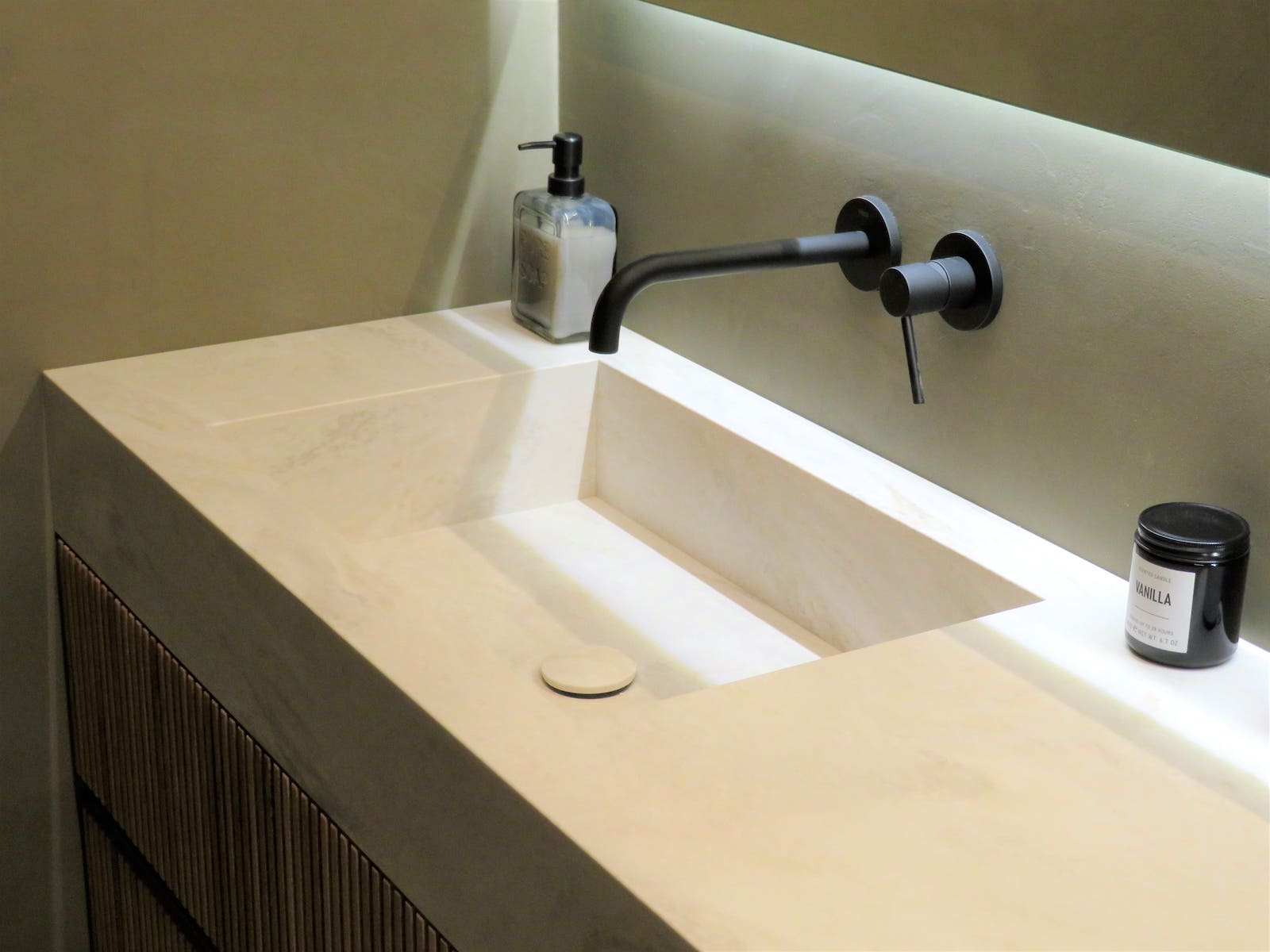 Este lavabo realizado en Corian destaca por su diseño limpio y contemporáneo, con un seno integrado que crea una superficie continua y elegante. La combinación del Corian blanco con el mueble suspendido de madera aporta calidez y equilibrio visual, mientras que las líneas rectas y los detalles cuidados refuerzan su carácter minimalista. Un conjunto funcional y sofisticado, pensado para aportar luminosidad y sensación de orden al espacio de baño.