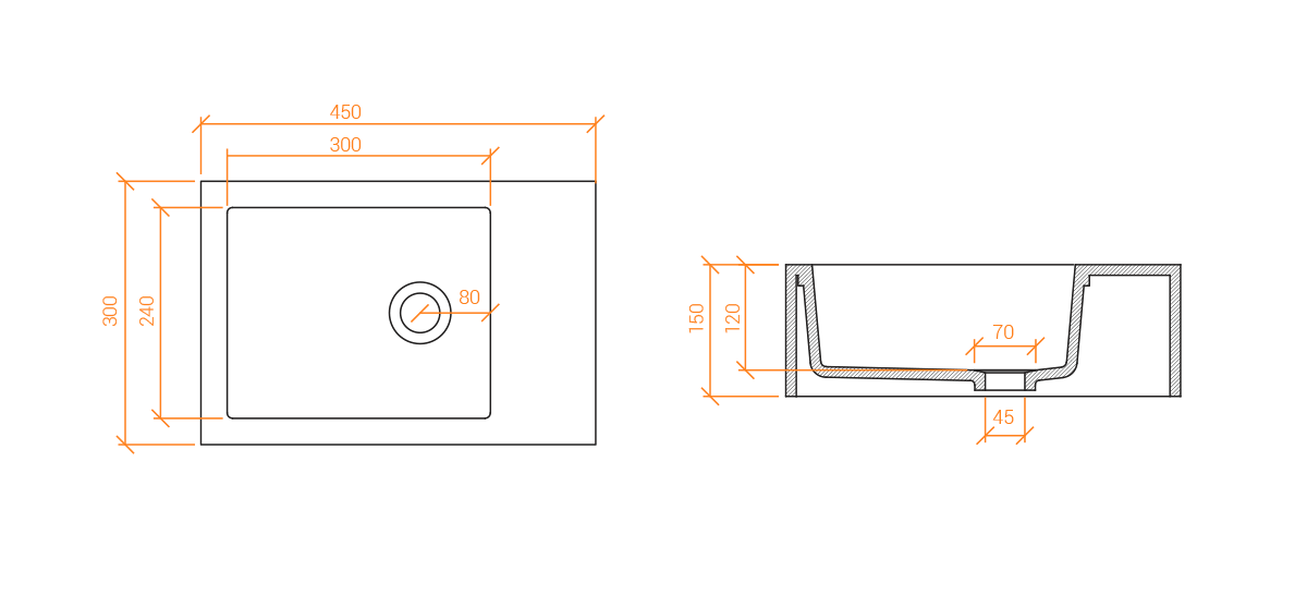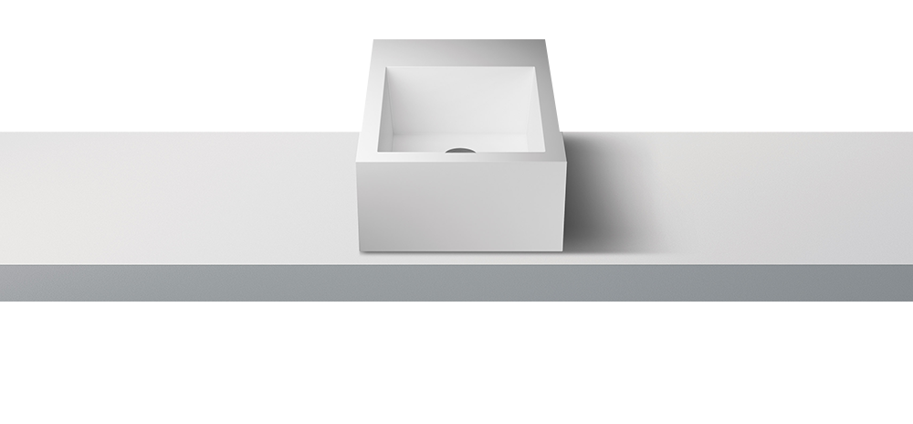 Lavabo rectangular de encimera, moldeado en Solid Surface - Piedra acrílica pura (100% acrílico), con 2″ agujero de drenaje central.