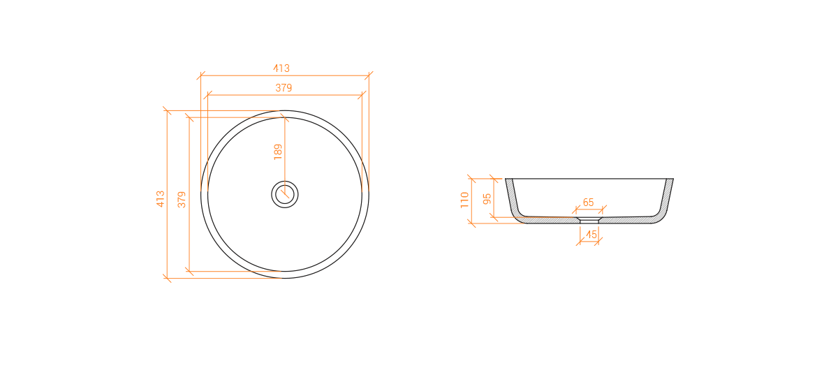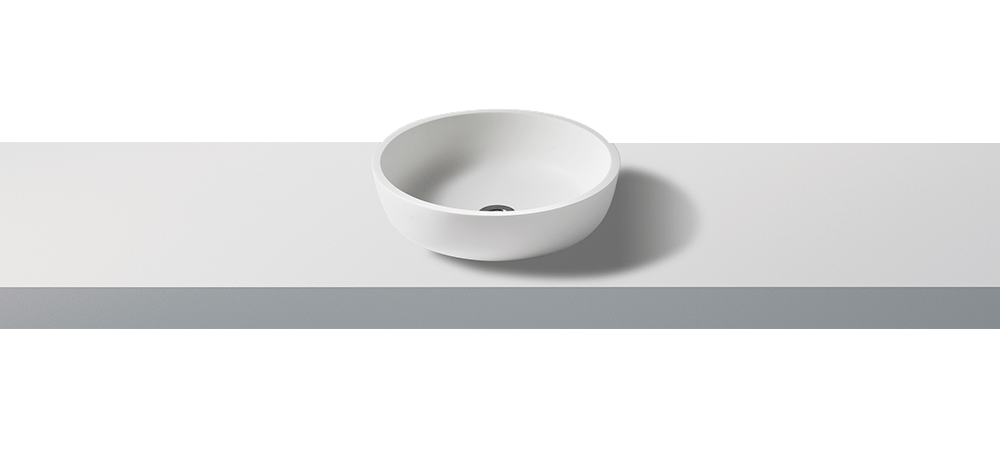 Lavabo redondo de encimera, moldeado en BETACRYL - Piedra acrílica pura (100% acrílico), con 2″ agujero de drenaje central.